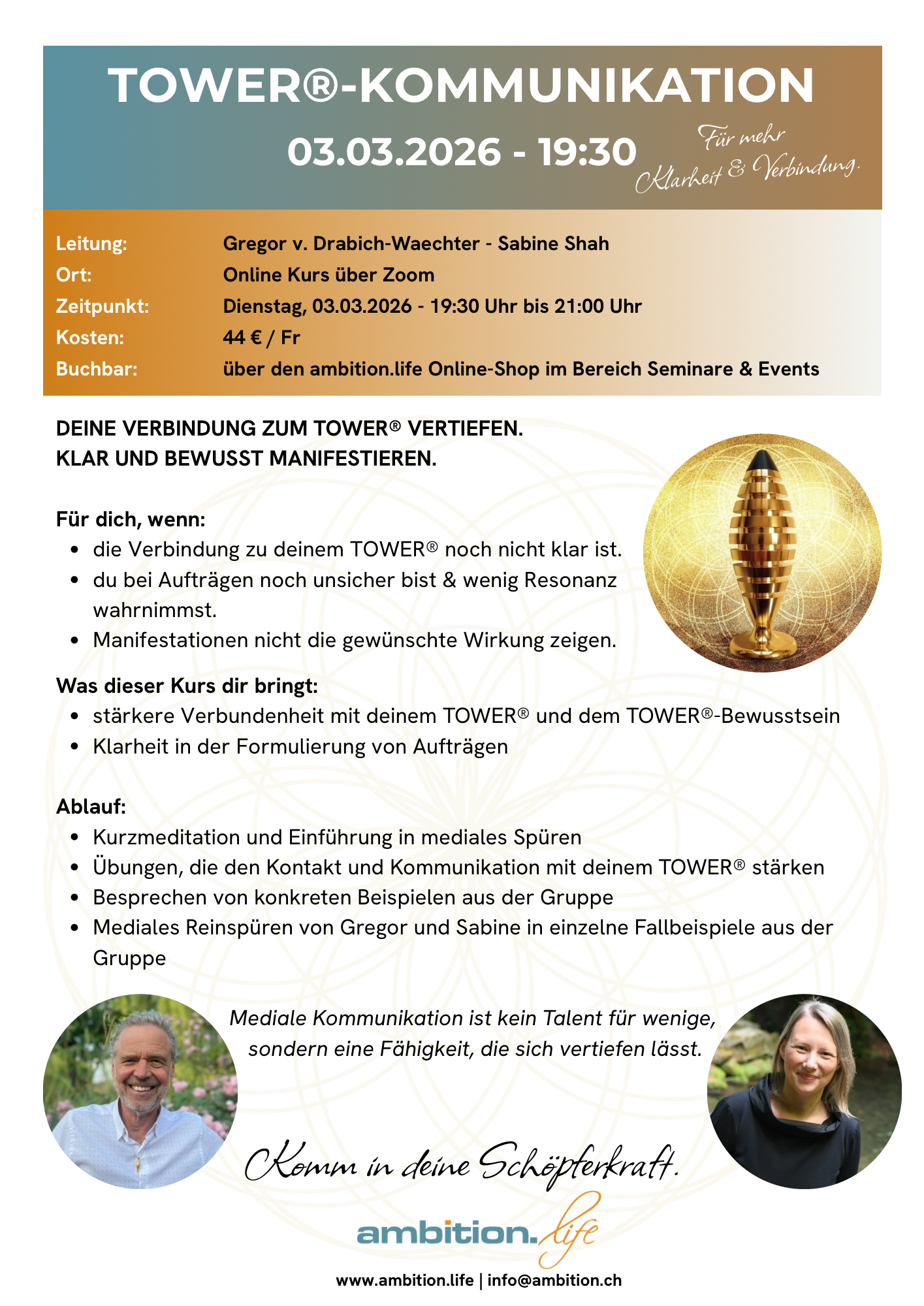 DEINE VERBINDUNG ZUM TOWER®️ VERTIEFEN. KLAR UND BEWUSST MANIFESTIEREN.